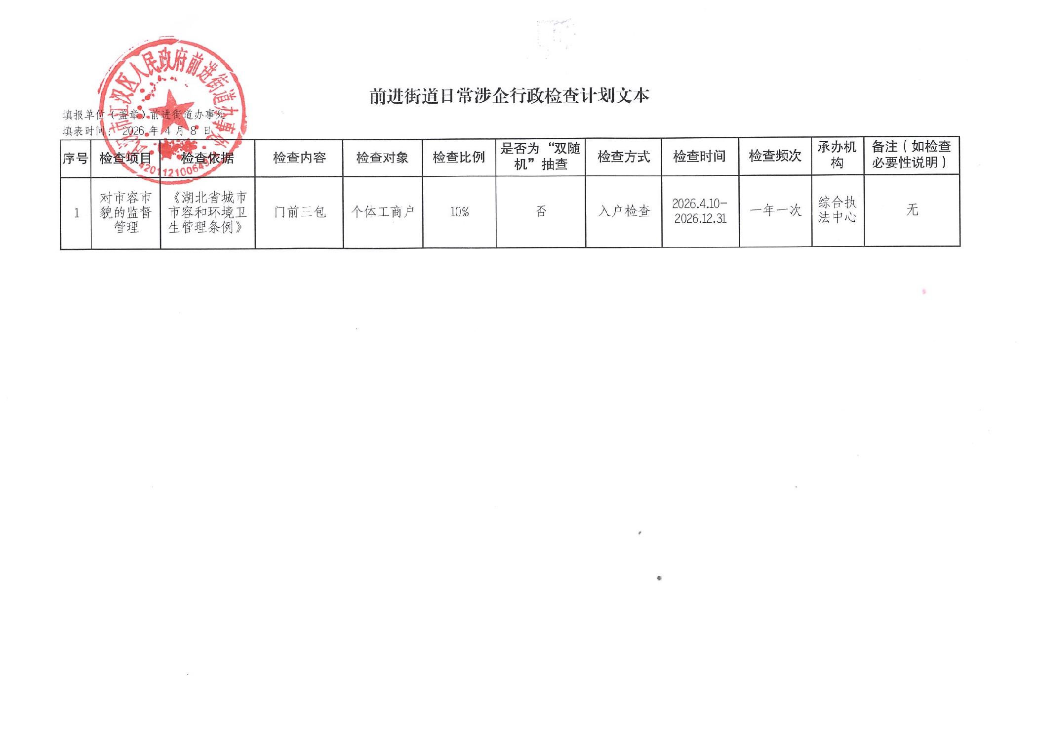 | 标 题 | 前进街道日常涉企行政检查计划文本 | ||