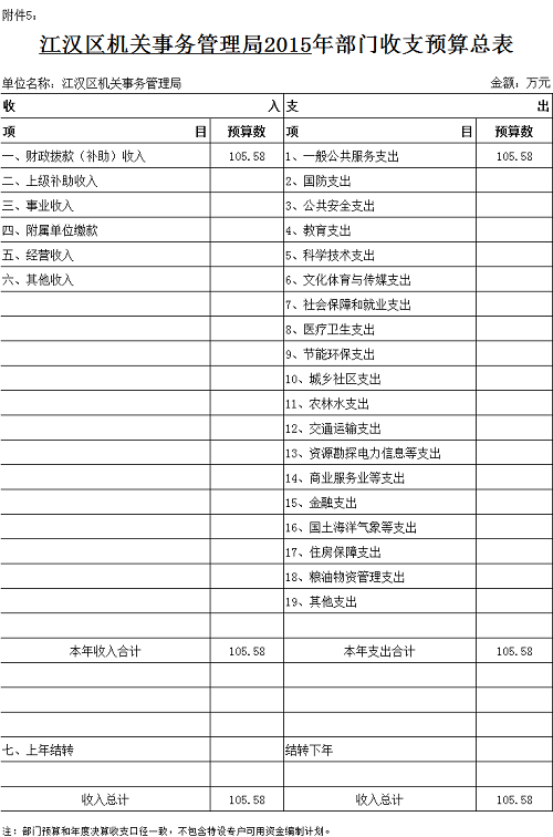江汉区机关事务管理局2015年财政拨款(补助)支出预算表