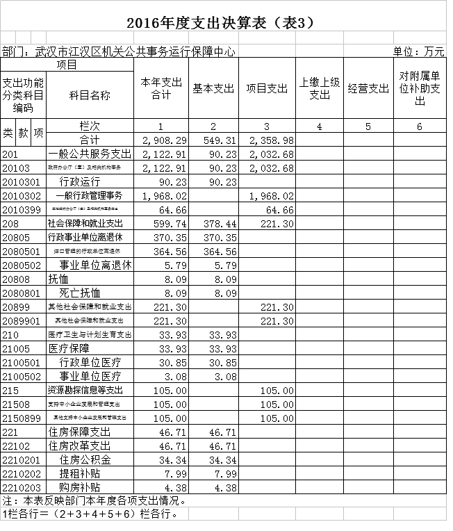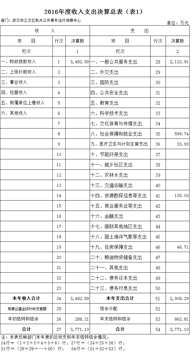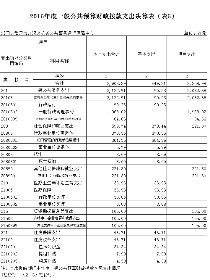 武汉市江汉区机关公共事务运行保障中心2016年度部门决算情况说明