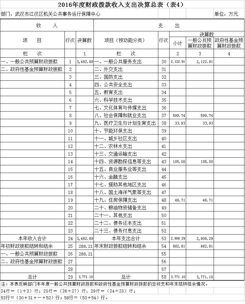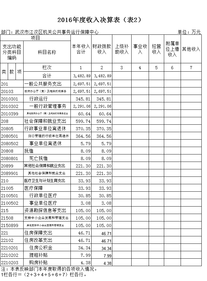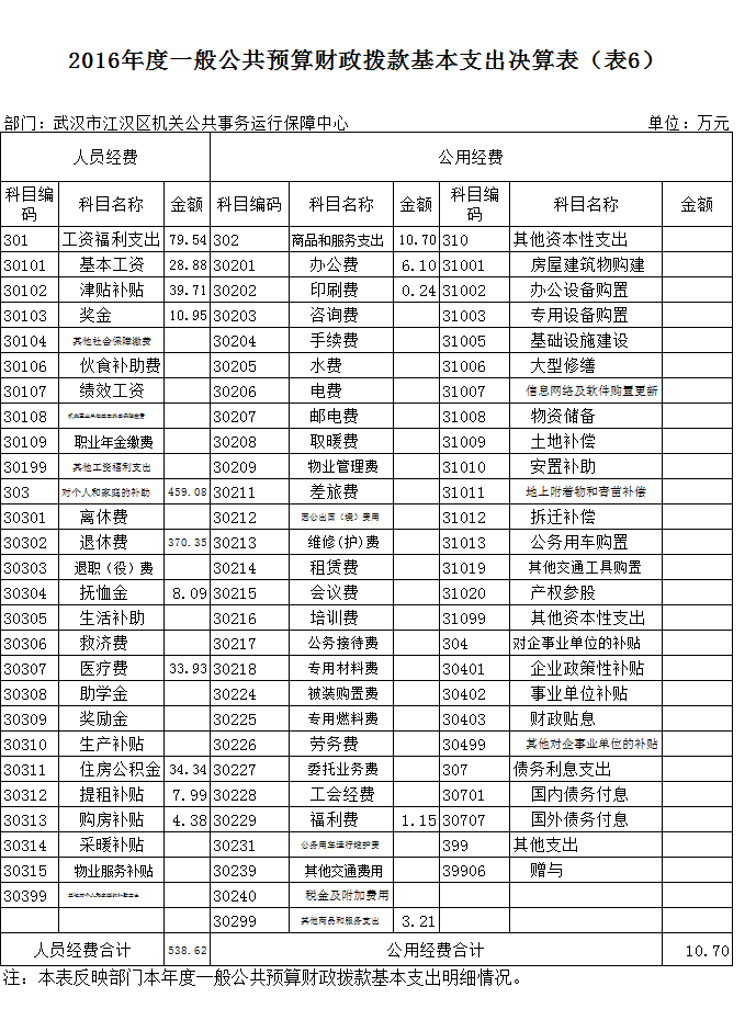 第三部分、武汉市江汉区机关公共事务运行保障中心2016年度部门决算表
