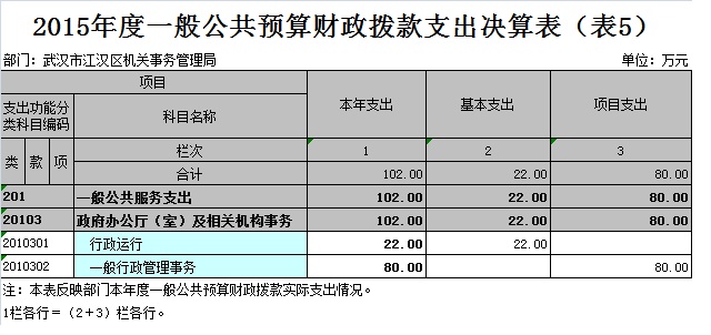 武汉市江汉区机关事务管理局2015年度部门决算情况说明