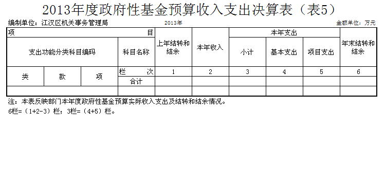 六、武汉市江汉区机关事务管理局2013年度政府性基金预算收入支出决算表