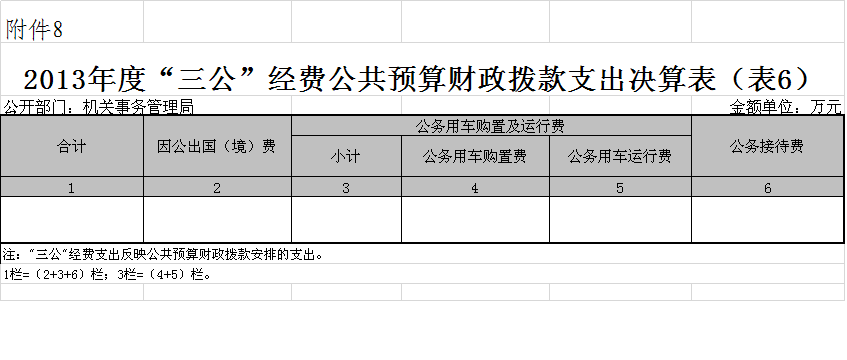 八、武汉市江汉区机关事务管理局2013年度“三公”经费公共预算财政拨款支出决算表