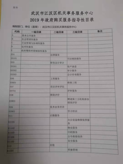 江汉区机关事务服务中心2019年政府购买服务指导性目录