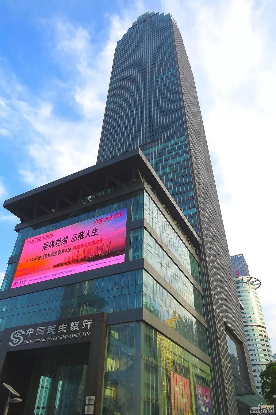 进入21世纪,民生银行大厦雄踞武汉第一高楼之位近十年。大厦地下3层,地上68层,建筑总高度333.3米,总建筑面积约15万平米,落成时成为中西部地区最高的大楼。该楼分南北两个裙楼,入驻有民生银行营业厅、宴会厅、多功能会所和网球场、证券交易所、中西餐厅、游泳池等,目前是武汉市最高的甲级写字楼。