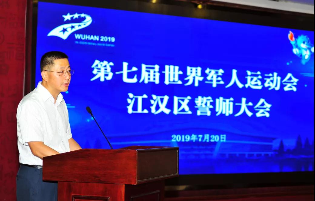 7月20日,距离第七届世界军人运动会召开只有90天。当天上午,江汉区在区机关5楼大会堂举行誓师大会,吹响了凝心聚力、决战决胜的冲锋号,同时也标志着江汉区的赛事筹办工作进入了新阶段、掀起了新高潮。