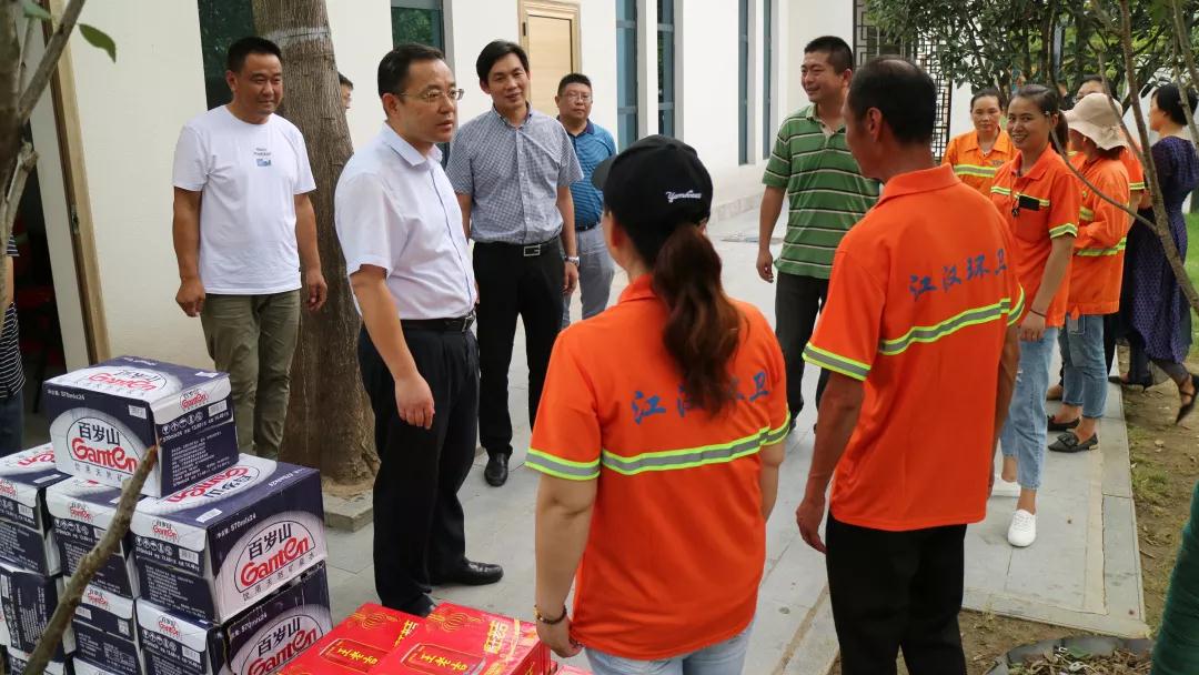 8月2日下午,区委书记张俊勇、副区长彭勇军一行来到江汉城管一线多个工作点位,看望慰问高温坚守岗位的江汉城管执法队员、环卫工人。