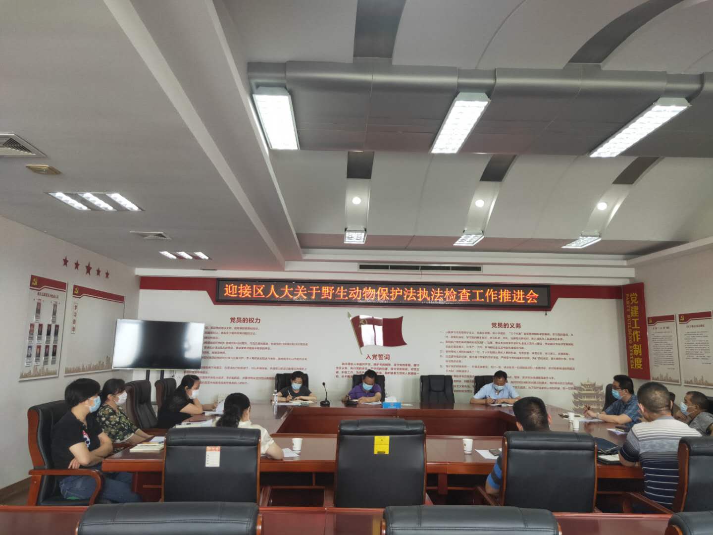 6月2日上午,为做好迎接江汉区人大常务委员会关于《中华人民共和国野生动物保护法》及《湖北省实施<中华人民共和国野生动物保护法>办法》执法检查的准备工作,江汉区市场监督管理局领导陈涛、钱韵如专员、办公室、人事监察科、市场和合同科、餐饮科、食品流通生产科、广告科、稽查科、动监所、法规科、投诉科、信用监管科等科室负责人参加了迎检工作推进会。会上,首先宣读了《区人大常委会关于野生动物保护“一法一办法”、“两个决定”执法检查方案》及江汉区市场监督管理局工作方案,科所负责人就“野生动物范围的调整发布”等方面展开了讨论。钱韵如专员帮助大家加深了对受保护野生动物定义和本部门当前承担的野生动物保护职能重要性的理解,并强调做好近三年相关台账收集整理,引导经营户执照登记合法合理。