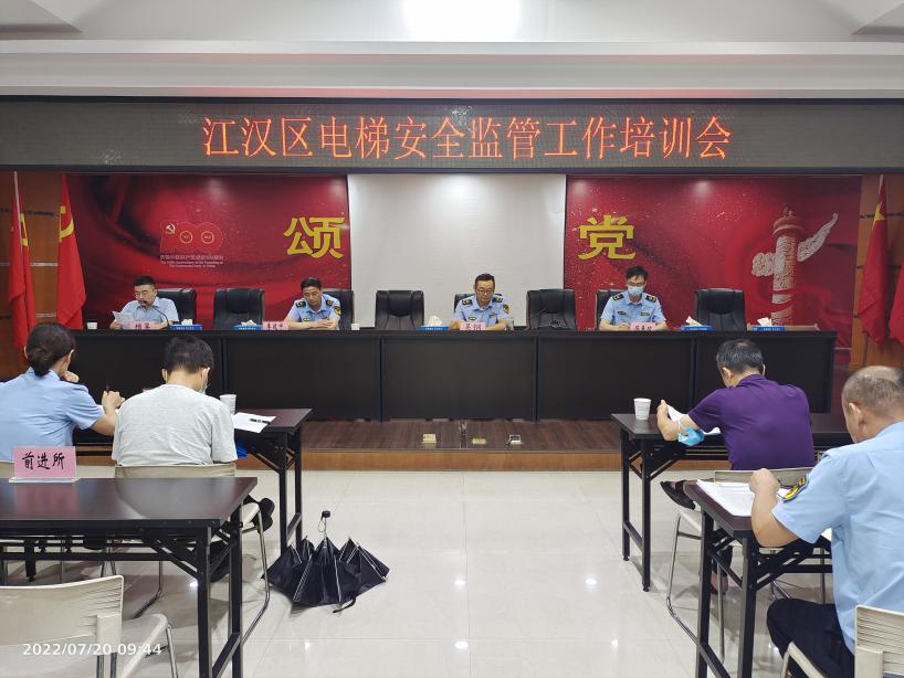 7月20日上午,江汉区市场监督管理局召开了江汉区电梯安全监管工作培训会,武汉市市场监督管理局机电处陈副处长出席了此次培训会,邀请了武汉市特检所高级工程师檀昊讲解了最新的《特种设备安全监督检查办法》,江汉区市场监督管理局14个市场监管所分管特种设备安全的所长和18名特种设备安全监察协管员参加了本次培训。