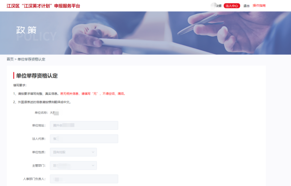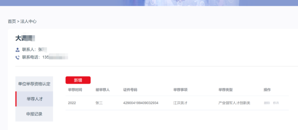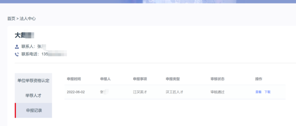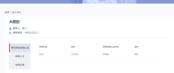 个人注册并在线申报提交后,单位可以在法人中心查看本单位的人员申报情况。