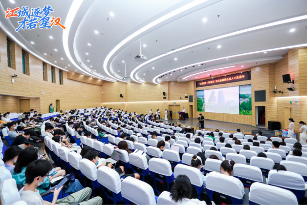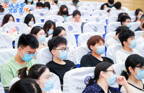 东湖之滨,珞珈独秀,江城逐梦,才若星汉。为深入推进“学子留汉”工程,深化“三名共建”人才工作品牌,强化与在汉高校沟通联系,吸引优秀青年人才集聚江汉,助力武汉金融城建设,持续拓宽辖区重点企业人才引进供给渠道,6月17日,江汉区在武汉大学举办武汉金融城名校人才直通车专场活动,为优质企业广纳贤才筑桥铺路,让青年人才与江汉城区“双向奔赴”、相互成就。武汉市有关部门领导、武汉大学有关领导、江汉区有关领导和学生代表及辅导员老师参加本次活动。
