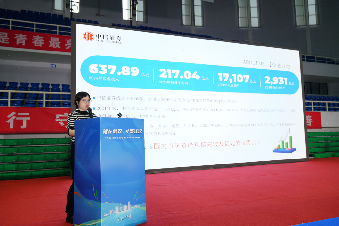 活动当天,中信证券湖北分公司作为金融企业代表、湖北观筑律师事务所作为律所代表、武汉金融街集团作为区属国企代表依次登台,围绕岗位需求、职业发展路径、薪资福利体系等进行推介,并向在场的高校学子抛出“橄榄枝”,传递出江汉重点企业对优质人才的迫切需求。