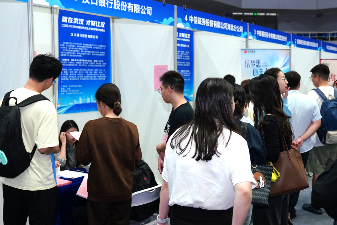 招聘会现场人流如织、气氛热烈,长江证券、中信证券、汉口银行、上海市锦天城(武汉)律师事务所、北京中伦(武汉)律师事务所等近50家江汉区知名企业整齐布展,提供“硬核”岗位350余个,涵盖现代金融、法律服务等多个领域,充分适配不同专业学生的求职需求。