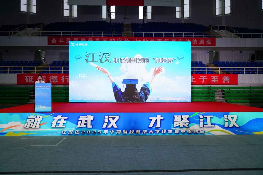 金秋招聘季,引才正当时。为积极响应“湖北人才周”号召,深化实施“才聚江汉工程”,9月19日下午,由中共江汉区委、江汉区人民政府与中南财经政法大学联合主办,中共江汉区委组织部、江汉区司法局、江汉区人力资源局和武汉金融街管理委员会共同承办的“就在武汉 才聚江汉”江汉区2025年秋季集中招聘会在中南财经政法大学成功举办,这场以“线下招聘会+线上云平台”相结合的“人才盛宴”,为江汉建设武汉国家级现代服务业中心先行示范区提供人才支撑。