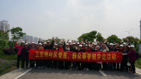 “全民健身日”的以来,王家墩社区以“全民健身日”为契机,通过开展健步走活动,引导广大居民群众积极参加体育锻炼,增强广大党员、居民的身体素质。4月27日上午,在王家墩社区党委付书记的带领下,近百余名党员、“两长四员”居民群众在张公堤的绿道前列队,旨在宣传“每天锻炼一小时、幸福生活一辈子”、“参与全民健身、乐享低碳生活”的健康理念。开展以“我运动、我健康、我快乐”为主题的全民健身活动。