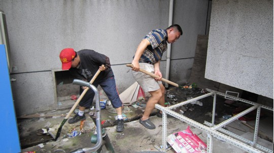 阳光家园的残疾朋友,正在挥汗清扫卫生死角