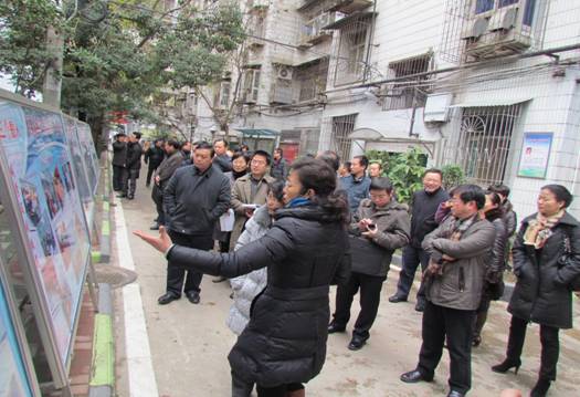 2012年12月29日下午,在武汉参加全国流动人口社会融合研讨会的各省市计生负责人在国家人口计生委流动人口服务管理司副司长贺丹的带领下,来到我街武展社区调研武汉市流动人口社会融合工作。