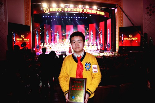 现就读于湖北华师一寄宿学校初一(3)班、担任着中国少先队武汉市总队副总队长的黄艺博同学,是近年来我市乃至全省涌现出的一位中小学生的优秀代表和江城百万少年儿童的领军人。因在校期间品学兼优、表现突出,曾多次受到湖北省委副书记、武汉市委书记杨松等多位省市领导的亲切接见。从小学到中学的6年多里,在老师和父母的教育引导下,他在学校不仅是个好学上进、全面发展的好学生和总队长,而且他走出校门在社会上,又是个富有爱心、关爱社会、热心慈善、乐于救助他人的优秀少年。进入中学后,既便学习十分紧张的情况下,他对学校、社区和民政、慈善会、老龄机构等社会团体组织的各类慈善敬老方面的公益活动,他都能够积极参与、热心参加。在中秋节、重阳节、国庆节、元旦和春节等几个重大的传统节日里,他用自己发表的100多篇文章挣来的稿费和平时省下的零花钱,先后到敬老院和街道社区困难家庭去看望慰问孤寡困难老人、老干部、老党员等达30多人次。人们都夸赞他说,从小艺博六、七岁开始参加慈善敬老公益活动算起,他可称得上武汉市民政系统年龄最小的扶贫帮困、关爱慈善的志愿者和小义工。