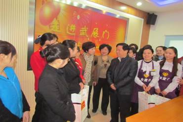 今年是“三八”国际劳动妇女节103周年,在节日来临之际,区人大常委会杨三民主任、区妇联方君主席、孙苏丽副主席、街道胡主任一行人于3月6日上午9点半来到武展社区慰问在工作岗位上兢兢业业的打工妹代表。