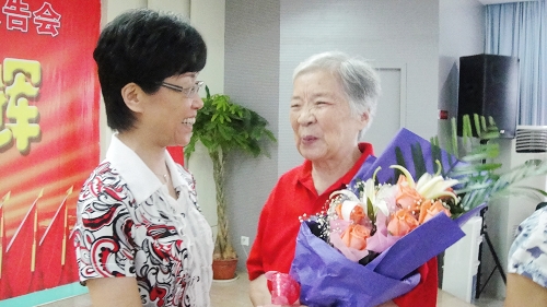 青松社区退休党员朱焱兰的报告中介绍了她作为一名普通的退休党员,十几年来,她积极投身社区工作,始终把门栋居民的冷暖放在心上,以满腔热情,忠实践行着一名共产党员的诺言,让党旗在门栋闪光。