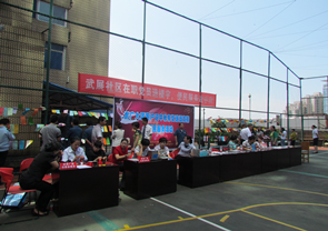 2014年9月4日中午11:30分中秋便民服务正式在武广写字楼9楼篮球场拉开序幕。为了让整个活动更富有娱乐性,武汉华信物业管理有限公司给楼宇中的白领、居民朋友们准备了360条谜语,让大家在工作之余,开动脑筋,哈哈一笑。只看见现场许多的人都在仔细的看着每一条谜面,同时许多年轻人还拿出手机百度搜索谜底,当有人找出谜底时,身边的朋友都高呼:“快、快、快去兑换小奖品。”,欢声笑语让整个场面热闹非常。