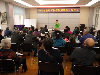 3月16日上午9时,湖北省委党校郭群英老师接受公园社区党委邀请,在公园社区二楼会议室,为 60余位老党员讲解2014年政府工作报告,并解读报告的亮点。