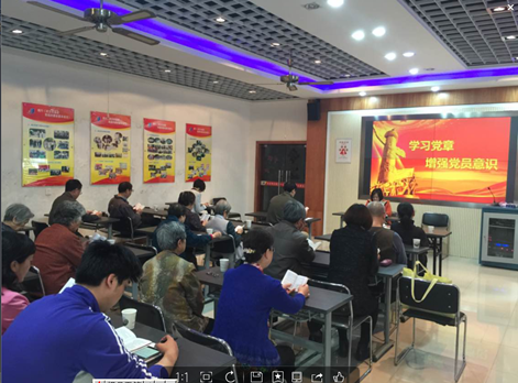 为激励广大党员们铭记党的章程,增强党员意识,社区专职副书记邵莉萍带领党员们学习了《中国共产党章程》的第一章《党员》部分,并决定与大院物业支部组建联合党支部,每月15日为党员学习日,组织广大党员干部开展“双育教育”。为增强广大党员的使命感和责任感,恪守入党誓词,在各自岗位上积极进取,争作表率,永葆党员的先进性,全体党员面对鲜红的党旗,肃穆站立,庄严地举起自己的右拳,重温了入党誓词。