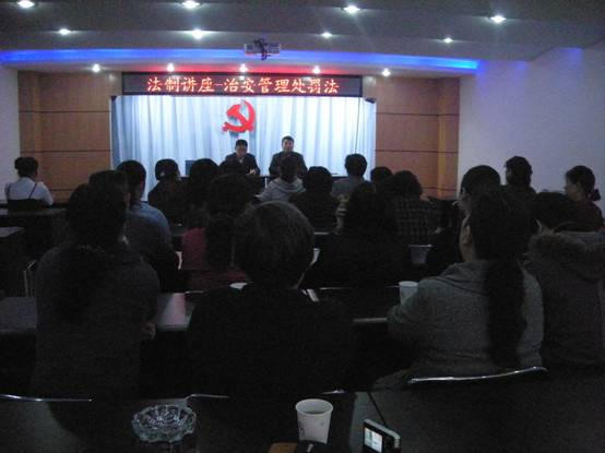 根据武综办文【2013】10号文件精神要求,围绕“平安武汉 人人参与”的宣传主题,努力贯彻实施“六五”普法工作,深入开展法律“六进”活动,不断推进万松街普法办与湖北诺亚律师事务所“同心”律师下社区工作稳步发展,不断提高公民法律意识,促进万松辖区法治建设。2013年4月25日上午9点左右,万松街普法办组织妙墩社区开展《治安管理处罚法》法制讲座,由其社区对口律师周俊峰主讲,近40名居民到场参加。