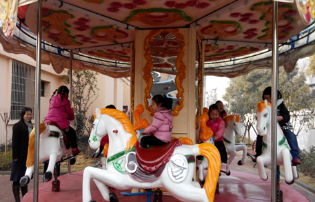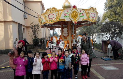 万松街共建单位武商集团捐献给街道,街道为机场社区争取的旋转木马就这样在机场社区”落户”了。机场幼儿园的小朋友们在社区的邀请下,第一次来体验旋转木马,孩子们和老师坐在旋转木马上,开心的唱起“新年好”的歌曲,稚嫩的笑声给室外活动场地带来一片新的活力。
