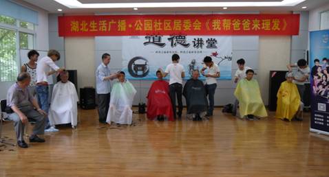 2014年6月15日是一年一度的父亲节,在父亲节来临之际,我社区携手湖北生活广播,举办“我为父亲来理发”公益活动,免费为辖区居民理发,参加活动达40人。