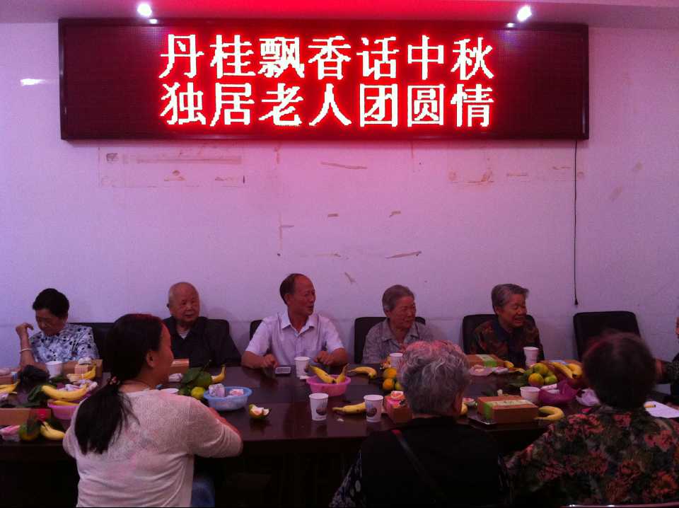 许多时候社区独居老人,日常生活简单,社区独居老人郑安琪,十年前老伴去世,两个儿子都忙于自己的工作,不在身边,常年一个人的生活,中秋佳节来临之即,老人没有给自己准备月饼,也没有想到要过节了,那份孤独一如她手拿蒲扇坐在树荫下,看着院子里的孩子嬉笑打闹;这些独住老人或子女出国在外一人独住或子女因工作在别的城市或者城市的另一边,难得一聚,他们带着对亲情的渴望守着这座城市,带着对流年往事的回忆,重复着日出日落。每逢佳节倍思亲,将他们聚到一起也是一种团聚,也是老人们一起对亲情思念的畅叙。