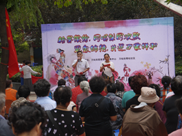 2014年9月29日在国庆节、重阳节双节来临前夕,青松社区联合万松街养老服务中心,在社区中心花园,开展了一场戏曲专场鉴赏会,为丰富社区文化生活及倡导文明过节理念又增添了一抹新的亮色。