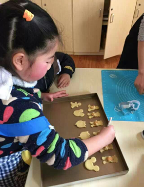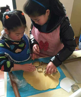 愉快的寒假生活开始了,机场社区焙乐园迎来了一群可爱的孩子们。她们在妈妈的陪伴下学做各种可爱的小饼干、小甜点。孩子们在烘焙师黄老师的指导下,揉、捏、搓、压亲手做出各种的爱心饼干、小熊饼干等。就这样孩子们与父母在温馨的烘培园不知不觉就渡过了一个愉快的下午。在学做各种小点心的同时,孩子们在黄老师的启发下,充分发挥自己想象力,做出了代表感恩的“爱心妈妈饼干”,“饼干一家人”一幅幅很有创意的手工画呈现着她们快乐的童年。
