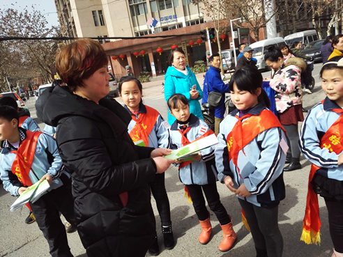 小学生志愿者在现场进行文明宣传