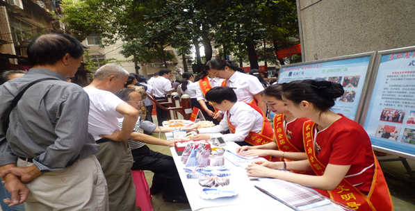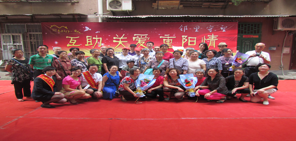 为了更好的践行党的群众路线,弘扬志愿精神,倡导传统美德,服务居民群众,展示社会组织精神风貌。在2014年金秋重阳节即将到来,为了迎接这个重大的节日,武展社区与共建单位湖北广播电视台资讯广播、湖北之声、经济广播、江汉区妇联、武汉文史馆、世贸广场、武商广场、国际广场、华信物业、武商大物业、武商量贩、武商网、滑坡路小学、武汉外语学校、江汉区人力资源局及经典美发世贸店在9月25日上午教委小区花园内举办了“互助 关爱 重阳情”大型庆祝活动。