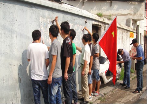 每年的6月是党员义务奉献月。2012年6月29日上午9:00,妙墩社区全体党员与武建机施公司年轻党员们开展了 “高举党旗,义务奉献”活动。党员同志们高举党旗,拿着劳动工具来到机施宿舍,为机施宿舍的居民服务,将楼道墙面清理干净,还居民一个干净、整洁、安宁的生活环境。