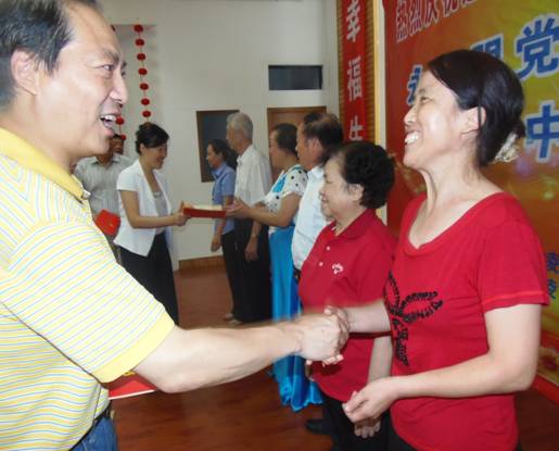 下午3:00整,凌云社区240余名党员、群众来到社区党员群众服务中心,一同用歌舞来表达对中国共产党的无比热爱。本次活动得到了万松街工委、办事处、凌云集团三产二公司领导的高度重视。万松街工委书记薛刚敏、街办事处李虹主任、李维炳副书记、乔小进副书记、凌云集团三产二公司陈汉敏书记、办公室主任陈炜都亲临活动现场,陈书记代表集团工会送来活动赞助金5000元。