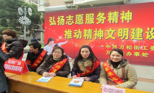 2012年12月3日,为纪念“国际残疾人日”,武展社区的助残志愿者们陪同社区残疾人来到万松广场,参加万松街工委主办的“弘扬志愿服务精神,推动精神文明建设”的志愿服务宣传活动。