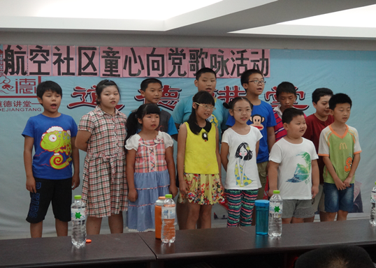 深化未成年人思想道德建设,切实增进青少年爱党、爱国、爱社会主义的情感,我们不但要坚持理论宣传还要和体验实践相结合。航空社区用组织青少年高唱红色歌曲的形式,引导青少年积极做中华民族传统美德的传承者、践行者和弘扬者。在大家合唱红色歌曲《少先队之歌》之后,活动拉开序幕。紧接着赵子懿同学精彩的朗诵《狼牙山五壮士》和赵梓霖同学表演小提琴演奏《新疆之春》,都获得了大家的热烈掌声。