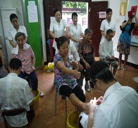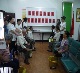 电业社区在深入开展党的群众路线教育实践活动中,社区以“服务群众”为载体,提高服务群众的工作能力,解决小问题服务群众,做好小事情造福群众。为满足辖区中老年朋友对健康养生保健知识的需求,加大对中老年人的健康服务力度,2014年8月12日上午,电业社区在托老所为62位老人开展了健康养生活动,为他们提供健康知识的宣传和义务服务。