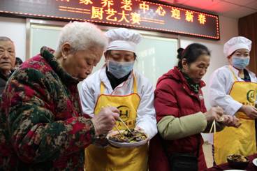 万松街居家养老中心开张两年来,吸引了越来越多的辖区老人来中心活动娱乐,特别是配餐服务,由最初的10余人发展到现在每天为80余老人服务。中心工作人员为了提升为老服务水平,了解老人的口味爱好,将配餐工作提档升级,于2014年1月27日中午,在养老中心举办“迎新春厨艺大赛”。