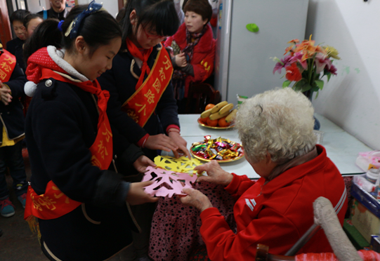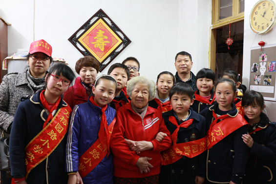 为进一步弘扬中华民族尊老、爱老、助老的传统美德,营造社区“尊敬老人、爱护老人、关心老人”的良好氛围,培养青少年尊重老人,敬爱长辈良好的道德观念,增强孩子们对社区的责任感,鼓励他们积极参与“学雷锋志愿者”活动,坚持“从我做起,从身边的小事做起”。白松社区联合万松园小学四年级(1)班开展志愿者服务活动,3月19日,白松社区志愿者和家长志愿者万小20名同学们来到社区百岁老人、退休教师张乃新和老伴欧幼植家里,给老人讲故事,表演舞蹈,送上精心准备的吉祥图案剪纸,衷心祝福老人长寿健康、幸福快乐、阖家美满。张乃新老人笑得合不拢嘴,由衷感谢政府、社区以及小志愿者们的拳拳爱心,气氛十分温馨感人。白松社区还特地为张乃新老人申请了居家养老服务,每天有专人上门为老人做饭,打扫卫生、解决了家属的后顾之忧。
