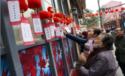 “这个灯笼真漂亮,你们看这红红火火的装扮,一看就知道废了不少心思”社区的阿姨们在赏灯笼的时候评论着形态各异的大红灯笼。