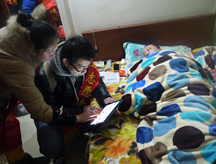 3月5日上午,青松社区共建单位江汉区残联的助残志愿者小分队一行6人,在其党支部书记钱建芳的带领下,提着米、油等慰问物资来到了社区重残户陈汉九的家中。钱书记代表区残联对陈汉九进行了慰问,询问了她卧床期间的生活及康复情况,并表示将长期对其进行关照。其他的助残志愿者们则对其家中进行了卫生清理,倒垃圾、整理床铺,使得本来杂乱的家中变得十分洁净。志愿者们还应陈汉九的要求,教授其登陆微博的方法,使其在卧床时,得到精神上的慰藉。