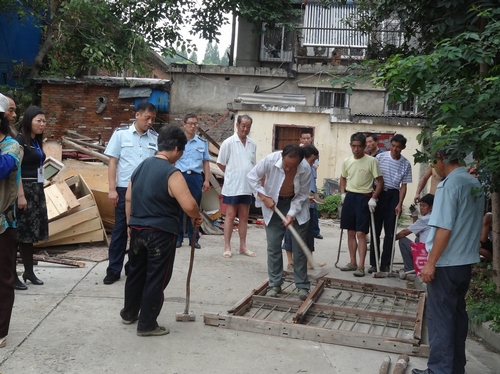 机场社区336栋组楼旁边违章建筑,阻碍了居民的安全出行,乱搭棚子存在安全及卫生隐患,多年来不断有居民投诉。6月26日上午,街城管科、十三师部队后勤部、王家墩派出所、机场社区四方联动,协调配合,拆除了机场社区336栋组楼旁边违章建筑,此举得到附近居民的大力支持和好评。