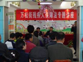 2013年4月10日上午,万松街司法所、万松街残联携手湖北诺亚律师事务所在万松街阳光家园开展《中华人民共和国残疾人保障法》专题讲座,街残联、社区残疾人员、阳光家园全体工作人员和学员积极参与,取得了良好的社会反响。活动开始,湖北诺亚律师事务所闵利胜律师主讲《中华人民共和国残疾人保障法》相关法律知识,穿插许多残疾人维权的经典案例,讲课形式活泼生动,很受阳光家园学员和家长的欢迎,闵律师还用武汉天才音乐指挥家舟舟的事例来鼓舞残疾学员,要像舟舟那样身残志坚,找到自身的价值,在实现个人价值的同时也实现自己的社会价值。讲座结束后,闵律师和司法所工作人员现场为学员提供法律咨询服务,解答阳光家园托管学员及社区残疾人提出的相关法律问题,鼓励他们积极使用法律武器来保障自身的合法权益,受到残疾人朋友的热烈欢迎。