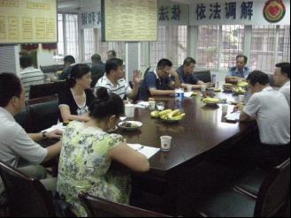 2010年9月16日下午,江汉区政法委副书记王宏凡、区法院肖副院长和区司法局余主任等一行来到万松街司法所,对我街三个基层职能部门的“三项重点工作”落实情况进行实地调研。