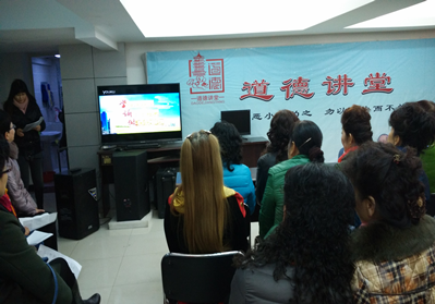 我们中华民族自古以来就是“礼仪之邦”,光辉灿烂的中华文化经过了五千年的沉淀,不断凝结、升华而培育了伟大的民族精神,形成了强大的民族凝聚力、创新力。在建设社会主义核心价值体系的当下,中华优秀文化蕴含的人生智慧、价值观念、道德理想、人生追求、情操境界以及对世界感知的方式,为我们提供了丰富的精神文化资源。2014年12月1日上午,航空社区举办主题为“弘扬凡人善举,传递道德力量”的道德讲堂活动,辖区内48位居民参与了活动。