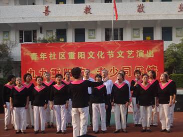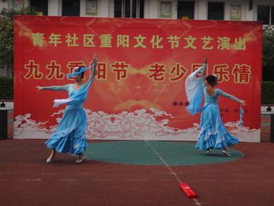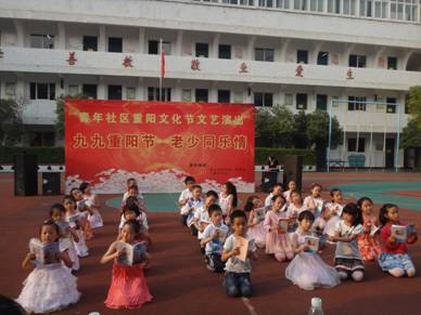秋风送爽,果实飘香。金秋十月,我们又迎来了一年一度的“九九”重阳节。为彰显中华民族传统美德,更好地敬老爱老,青年社区于9月11日在辖区卫星村小学举办“九九重阳节 老少同乐情”大型的文艺演出活动。