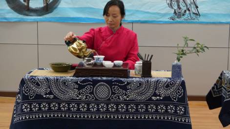 首先,“松之梦太极队”的队员韩秋林以PPT的形式与大家分享了她的饮茶心得;接着,太极队的队长陈彩容老师为大家进行了茶艺表演,并为在座的每位朋友奉上了刚冲泡的乌龙茶,其间,还与大家互动,告诉大家茶的分类、如何识别茶叶的优劣等等一些小常识,大家在优雅的琴声伴奏下一边品茶一边学习茶文化,最后,在李主任的建议下,每人说一句与茶有关的行茶令结束了这次活动。
